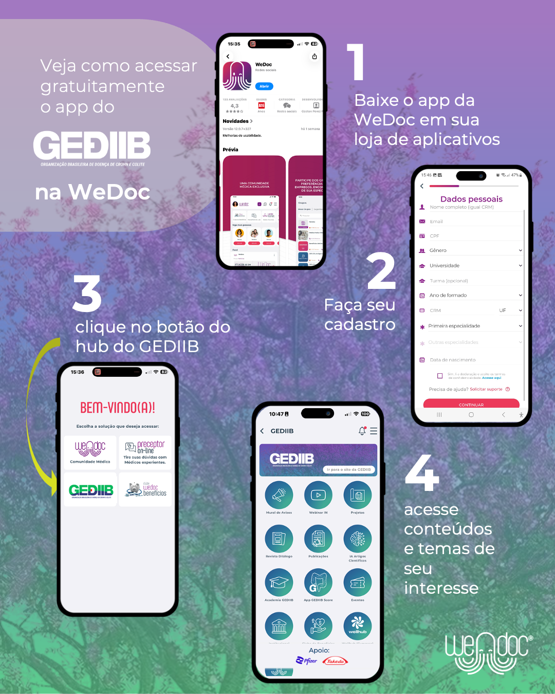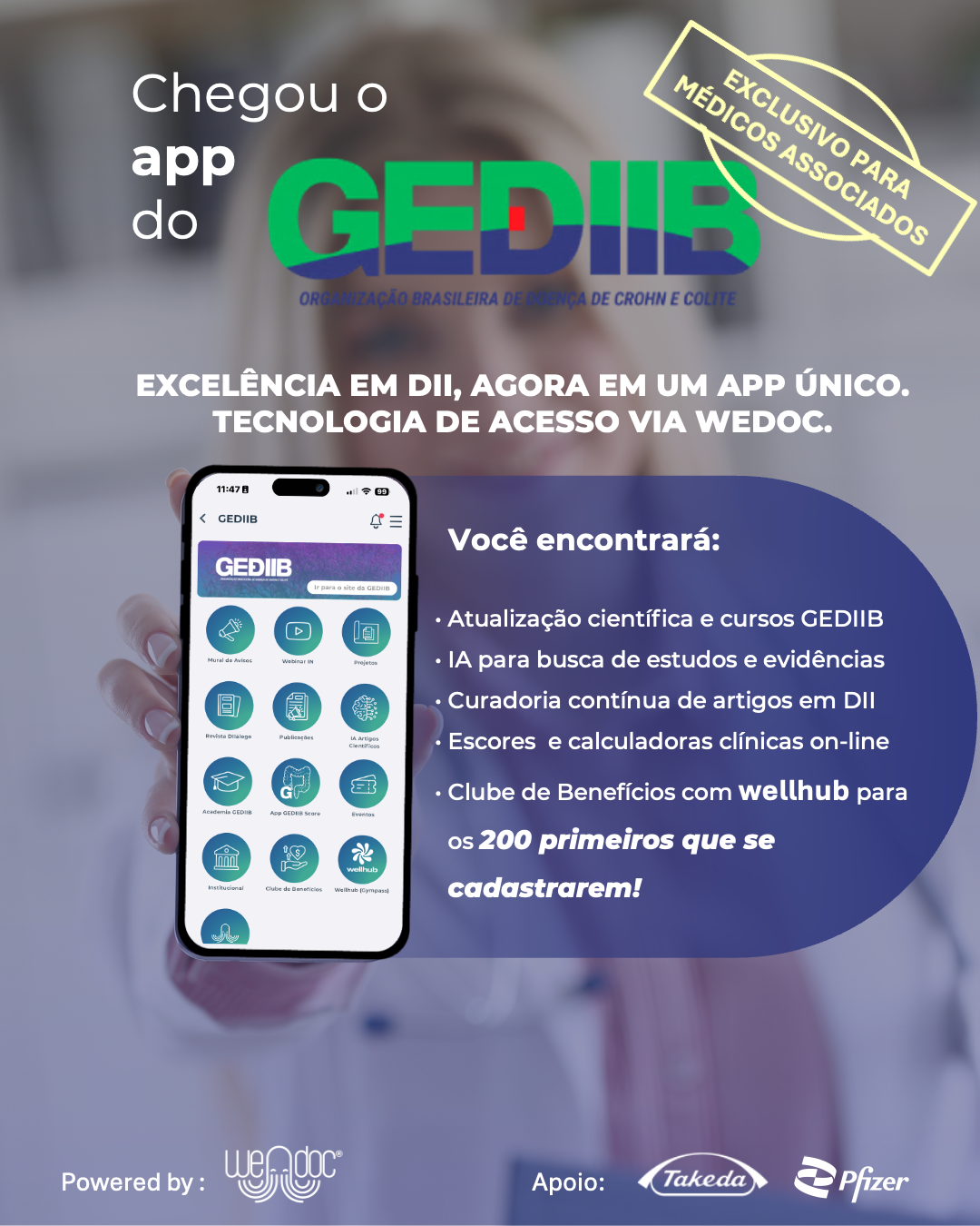 A Organização Brasileira de Doença de Crohn e Colite (GEDIIB) dá mais um passo importante em sua estratégia de transformação digital e valorização do associado. Já está disponível a Comunidade Oficial do GEDIIB no WeDoc, um aplicativo desenvolvido para conectar médicos e profissionais de saúde, reunindo conteúdo científico, ferramentas práticas e networking em um só lugar.