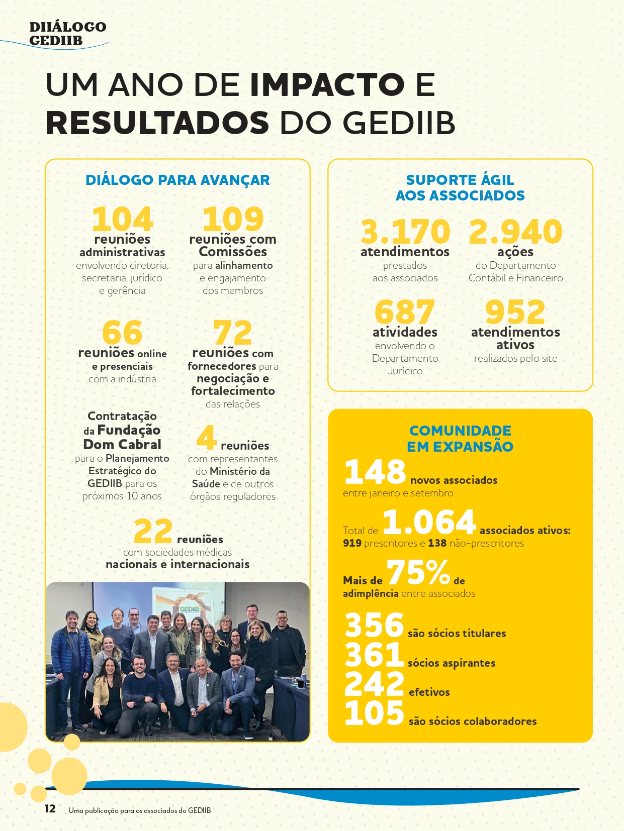 Ao olhar para trás, é gratificante constatar que cada iniciativa, projeto e encontro é resultado da entrega e do compromisso de uma vasta equipe que se dedica ao GEDIIB, desde a diretoria até o nosso staff. É graças a esse conjunto de pessoas que nossa organização tem crescido e se fortalecido. O trabalho colaborativo, a ciência e a formação contínua são os pilares essenciais para avançarmos juntos, enfrentando os desafios e construindo um futuro promissor para o tratamento das DIIs no Brasil e na América Latina.